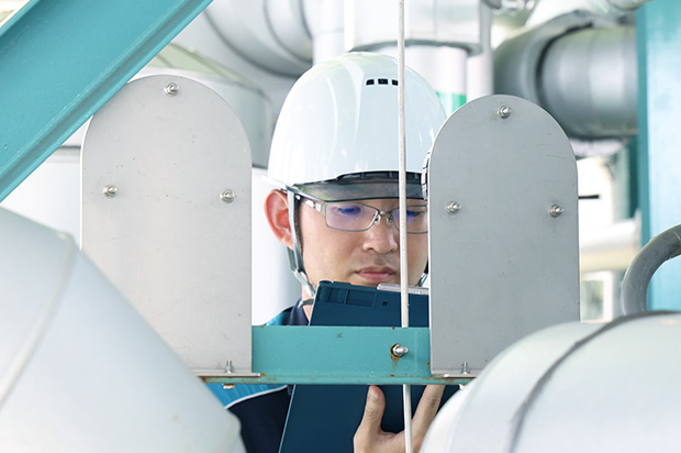 化学工場では、定期的に設備を停止して点検を行うことでプラントの健全性を確保しています。