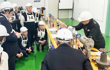 研修の前半は川崎本社にて、ビジネスマナーや会社のルール、各部署の代表者による部署紹介などを行います。後半は川崎工場にて、製造や生産、出荷などの実務を行い、メーカーである当社のモノづくりに対する理解を深めます。一連の研修が終了した後には、それぞれの部署に配属となり、部署ごとの教育が始まっていきます。
