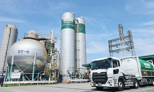 炭酸事業では、環境に配慮して製造された液化炭酸ガスおよびドライアイスを、安全・安心にお届けしています。川崎・四日市・大分の自社工場を拠点に、原料から製品まで、一貫した厳しい品質管理の下に製造しています。製造から販売まで一貫した体制と、ISOコンテナ導入により強化された全国拠点の供給網により、信頼性の高いサービスを提供しています。